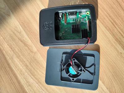 This RP will be running all day long so cooling is important. Follow these instructions or this video tutorial to install a 5v fan on the RP. Remember that this type of fan will spin while having a power supply, regardless if RP is shutdown. This is where a smart plug comes in handy: when you turn the power on, both RP and fan start up, and after shutting down the RP you can turn the plug off to stop the fan. However, do not use the smart plug to turn power off before safely shutting down the RP as this can lead to the corruption of its microSD card.
