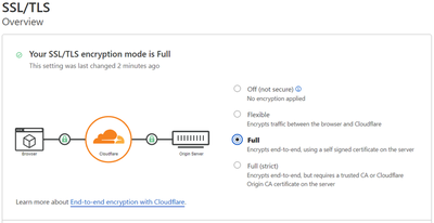 - Full end-to-end encryption (to activate it in the Cloudflare dashboard go to