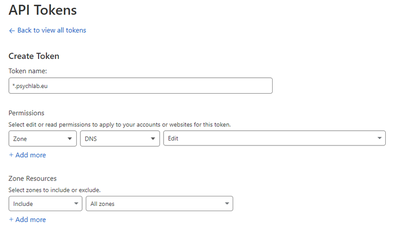 (2) Give it a name (e.g. Toke name: *.psychlab.eu), set a Zone (e.g.