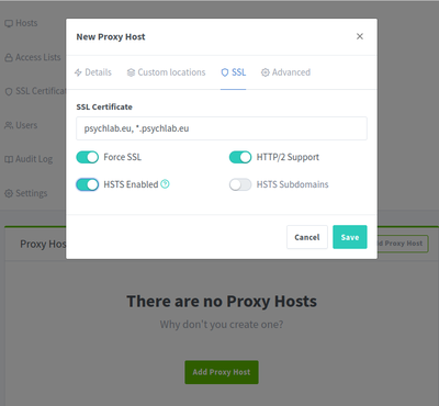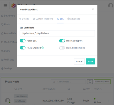 - SSL Certificate: *.psychlab.eu, psychlab.eu